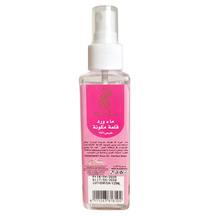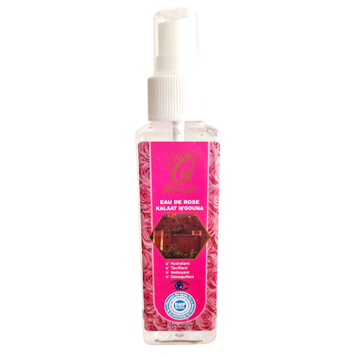 de la vallée mythique de Kelaâ M’Gouna, 100% naturelle et distillée à partir des pétales de rose de Damas cultivées dans la « Vallée des Roses ». Ce soin précieux est reconnu pour ses propriétés apaisantes, tonifiantes et hydratantes. Idéale en brume rafraîchissante, tonique ou base de maquillage, elle apporte à la peau douceur, fraîcheur et éclat naturel.